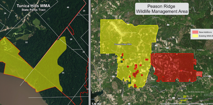 The Louisiana Wildlife and Fisheries Commission in September approved sizable acreage increases for both Peason Ridge and Tunica Hills Wildlife Management Areas.