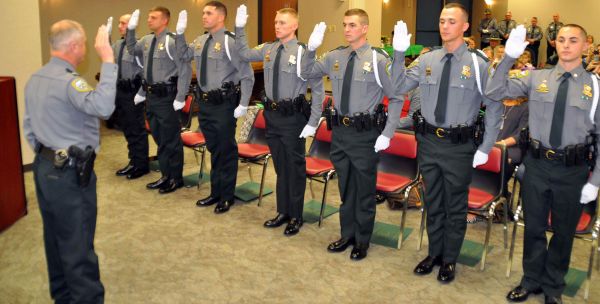 The seven men, who graduated after a six-month physical and academic program at the training academy, will spread out across the state to begin enforcing hunting, fishing and boating regulations.
