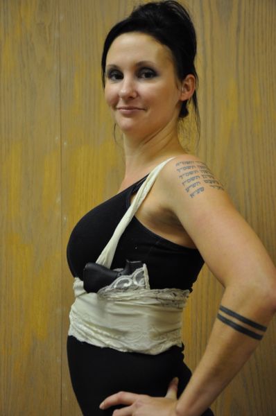 After a couple of car burglaries in her work parking lot, she decided to carry, and realized she was going to have to design a carry system herself to meet her specific needs.