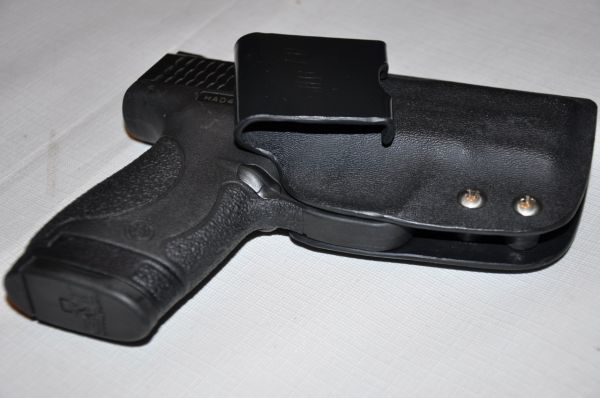 I favor waist carry, either in the small of the back, on the backside of my hip, or on my right side. I have discovered a Kydex holster designed as an inside-the-waistband (IWB) carry that is the best I have yet found of this type.