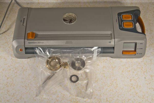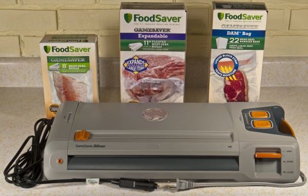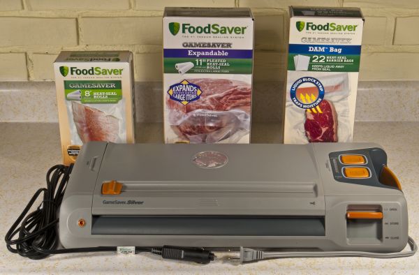 Vacuum-sealing systems have traditionally been kitchen-use items. FoodSaver has changed that with its new dual-power GameSaver G500 Silver model. It runs on 110 volts, AC, in the kitchen, but it can also run in the field on 12 volts, DC. A special 15-foot cord plugs into any standard power outlet in your vehicle or boat that is protected by a 10-amp or larger fuse.