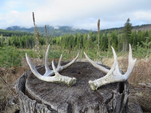 I even found a pair of nice sheds from a 12-point whitetail, but I wasn’t seeing bear sign in these turkey-filled bottoms so I ventured to higher elevations. I took my wife on a 12-mile hike and she got to see her first-ever moose and elk, when a giant 700-pound bull elk ran 10 yards in front of us.