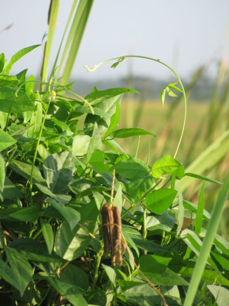 Best of all, this fresh marsh is absolutely covered with deer pea (Vigna Luteola). This wetland vine got the name for a reason: Deer love it, but it’s mostly withered by the gun season. In mid October, however, most of the leaves and vines are still green, though the actual pea pods may have browned.