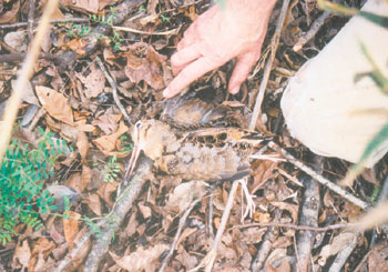 Shaw uses only one dog at a time, and chose Sam to start with. Before setting out, he fitted Sam with a beeper collar. The loud beep it emits every six or seven seconds allows Shaw to keep up with the dog in the thickets. If the dog wanders too far, a whistle is used to call it back. Sam, as it turned out, tended to ignore it.