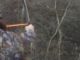 After a good night’s rest from my 12-hour-plus backpacking meat haul, I made it up the mountain with my climber the next evening in the national forest. I was creeping as stealthily as I could, but my climber must’ve made too much noise crossing all the fallen logs and brush, sending a bear near the carcass running away.
