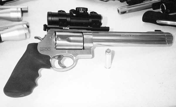 Apparently Smith & Wesson got tired of all the arguments about who had the “…most powerful handgun in the world…” (quoting a movie character we all remember well), and decided to settle it by producing what is now the most powerful production revolver in the world, and “the most powerful production revolver cartridge ever developed,” according to their catalogs and news releases.