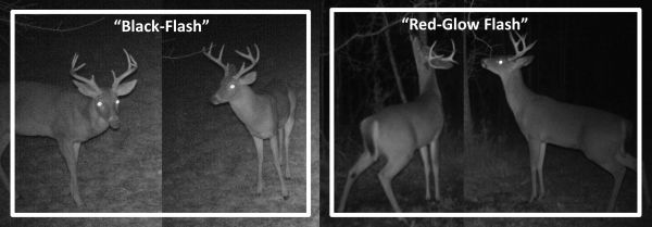 Conversely, “red-glow” and “no-glow” IR flash is much more useful and appropriate where deer will tend to be closer to the camera and somewhat stationary, such as at a scrape or feeder site.