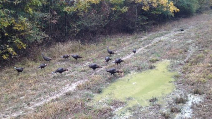 Bearded hens are more common than piebald deer, but they are still an anomaly. My friend Jimmy Stafford writes in his book about wild turkeys that 1 in 25 turkey hens in Louisiana have beards. The bearded hen that I was looking at was obviously the boss hen of the group. The flock consisted of five jakes and eight hens, and it may have been her brood that she produced last spring. A bearded hen is still a hen, and only gobblers are fair game during the turkey season.