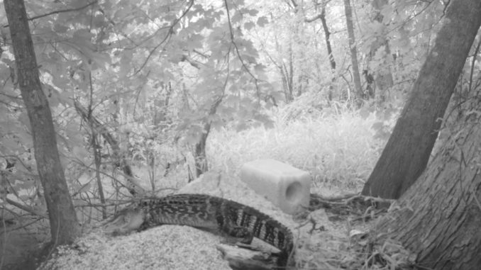 The first round of the 2011 Trail Cam Contest goes to Chase Martinez, whose entry shows an alligator seemingly guarding a feed pile.