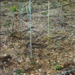 For example, the last transect was taken with the second cage as the starting point. Devil\’s Walking Stick, a small woody tree that is readily eaten by deer, was growing inside the cage. This was the only stem of this plant species found on the entire survey. The leaves that were growing through the wire cage were being hammered by the deer.