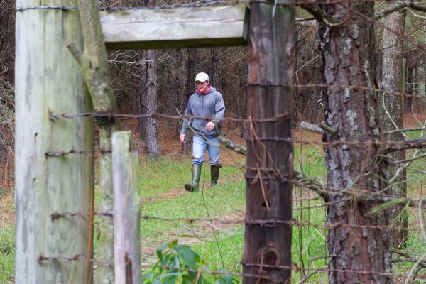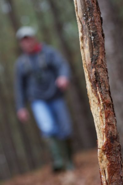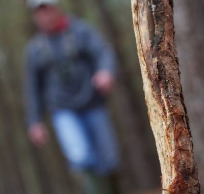 An avid bowhunter, Simpson looks for trees that will work for whatever winds he gets in February because he expects the same kind of wind next hunting season.