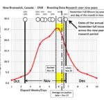 Now, with that in mind, look at the round circles at the top of the graph that depict the full-moon dates during the month of November across the entire nine-year data period.