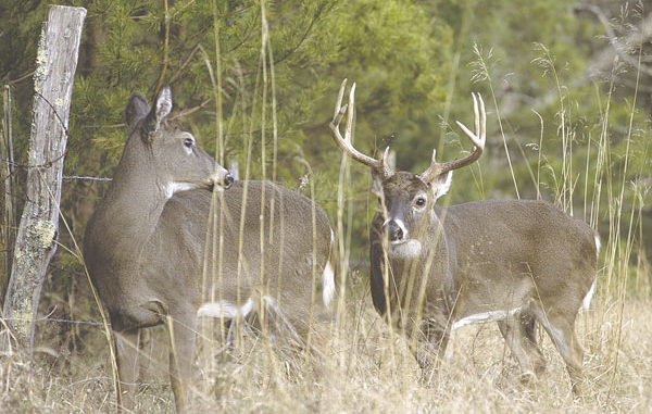 Another fascinating aspect of rutting bucks is various tactics used to survive while achieving successful breeding. Some large-bodied bucks with big racks will consistently avoid serious physical contact yet will not leave the area where a doe is in peak estrus. Those big bucks, appearing reluctant for a confrontation, can actually create a cat-and-mouse game of running and darting with the assertive dominant buck. Their objective, apparently, is to outmaneuver and lure the dominant male away from the doe. If underbrush, like pine growth, is available for concealment, it gives the evasive buck a window of opportunity to breed the doe while the dominant buck is preoccupied looking for this intrusive and elusive menace — especially if younger bucks distract the big dog as well.