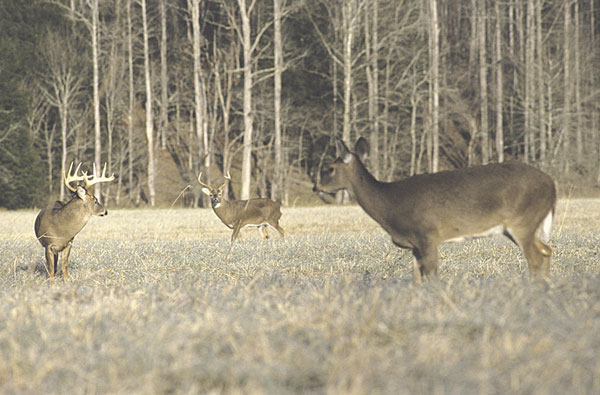 Once bucks are in the height of pursuing does, their instincts for survival are somewhat diminished. Their eyes, ears and noses are focused on estrus does, and although they can still respond to threats, most of the time it takes them a few seconds longer to put two and two together. This stupor of hesitation on a rutting buck’s part offers a grand opportunity to bring him down.