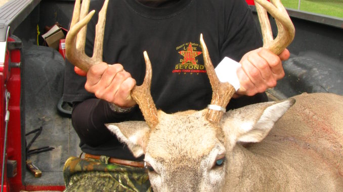 Husted’s deer is a potential state record, with points sticking out everywhere.