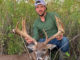 “The doe also saw the other deer and she moved a few steps away from the corn pile,” Smith said. “Then I saw what she was looking at, a big buck. The buck turned around like he was going to leave but then turned and started scraping the ground, lifting his head high like he was smelling the doe. He stood facing me but then he turned a bit and I got a bead on him with my Thompson Center Encore 300 magnum and squeezed off a shot. He took off and my heart almost stopped; I was afraid my shot was off.”