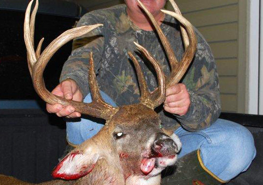 The buck, later aged at 5 ½ years old, sported 10 heavy, symmetrical mainframe points with an 8-inch sticker jutting out from near one of the brow tines. The buck was scored by three different people who came up with scores ranging from 169 to 171.