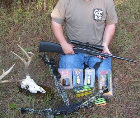 He also wears a set of Duxback 3-D Leafy camo for bowhunting. He shots a Carbon Express X-force 350 bow, and uses Cedar Hill cover scents every time he goes in the woods.