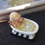 The shop flooded during the great flood of August, so back into the tub went Mr. Bubbles until the store reopened. He was up for sale the day they had their grand re-opening.