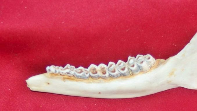 We discussed in the last issue that 6 year old deer will have a first molar with a very narrow strip of infundibulum, just a fine line. At age 7 there will be no infundibulum present, and the first molar will be heavily worn with a flat surface. The second and third molars will still have a strip of infundibulum, similar to that of the first molar on a 6 year old deer. Finding deer in this age class, especially does, is a sure sign that hunters are not killing all the deer.