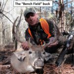 To my surprise, there was a second buck coming down the exact same trail, but this buck’s body and antlers were noticeably larger and more impressive than the first buck. Through my field glasses I instantly recognized him as the Bench Field Buck, and he was only seconds away from the edge of the woods road shooting lane.