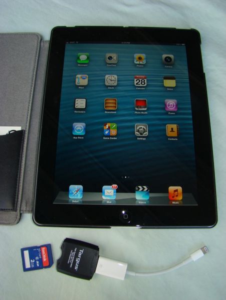 All that was required, beyond the basic iPad itself, was an adaptor cable and a memory card reader.