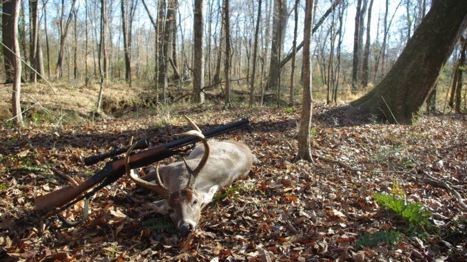 This morning (Jan. 27), I was hunting a hardwood drain on some private land adjacent to the property we hunt on. I had hunted this drain one day during the opening week of primitive hunting in November and saw a doe and fawn. I eased into the south end of the drain well before daylight, and sat down with my back against a big water oak tree. It was a beautiful morning, cold and crisp, with a light freeze and very little wind. I did my usual grunting with my Haydel grunt call and a doe bleat call. I would call about every 30 minutes, but the only movement in the woods was the squirrels. At 8 a.m., I picked up and moved to the north end of the drain: the spot I had hunted the first week.