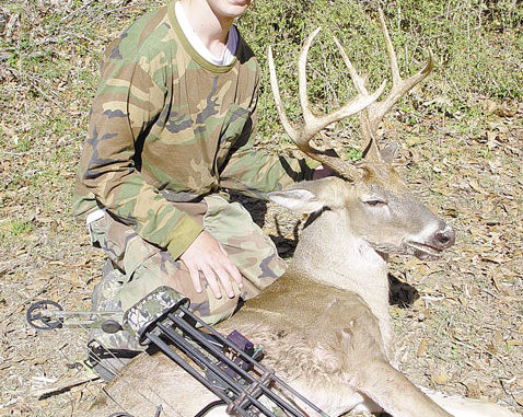 So Davis quickly drew and, when the buck paused momentarily, loosed his arrow.