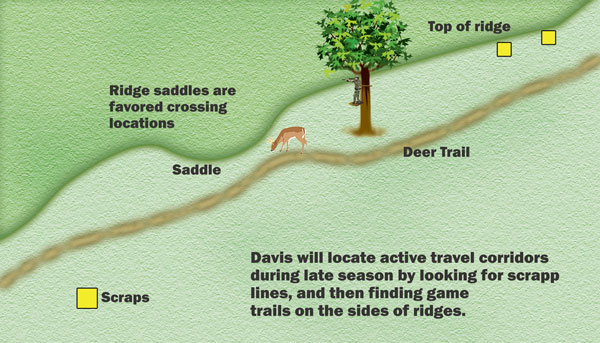 “I knew there was a good buck in the area because of the rubbings,” Davis said. “It was a travel corridor, and I knew they were traveling around the edge of a gully.”