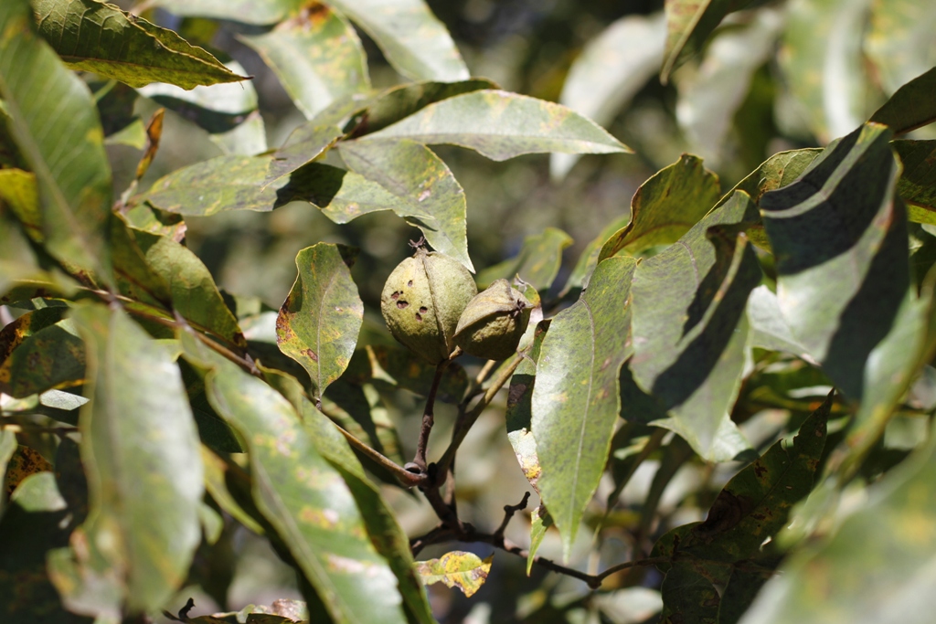 Water hickory, also known as bitter pecan, can be found in wetter forest sites along with the overcup oak. Water hickory is moderately tolerant to shade and flooding, and is adapted to flats, sloughs and the edges of swamps on poorly drained clay soils. The .75- to 1.25-inch-long nuts resemble that of other hickories, and are favored by waterfowl. Squirrels and hogs also eat the fruit.