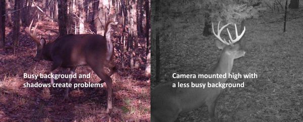If a busy background is just impossible to avoid at a given location, hanging your camera higher on the tree with it cocked at a slightly downward angle sometimes solves the problem.