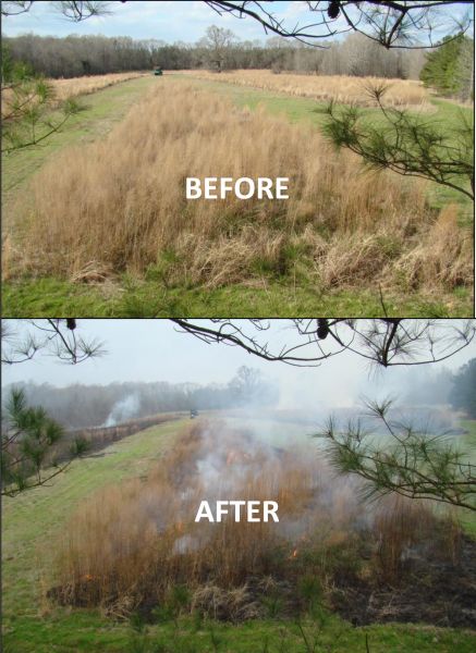 On the other hand, a program of controlled burns in old field habitats helps to maintain the early successional components of plant growth, and maximize forage quantity and quality.