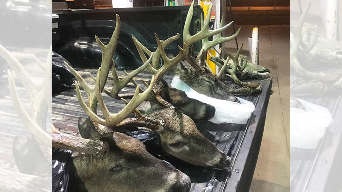 The seasonal limit for antlered deer is three and the daily limit of antlered deer is one for this area of the state. Agents seized six sets of antlers including a 10-point, two 9-points, two 8-points and a five point as evidence.