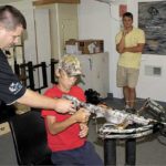 After going over the main features of the crossbow and stressing the importance of reading the owner’s manual, Romano showed Cooper how easy it is to cock the crossbow with the use of the cocking device. Two small clips hook on the bow string on each side of the rail. With a foot placed in the stirrup, it’s simply a matter of pulling up on the cocking rope handles until the string locks in place.