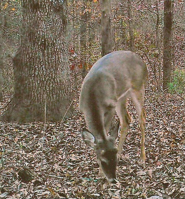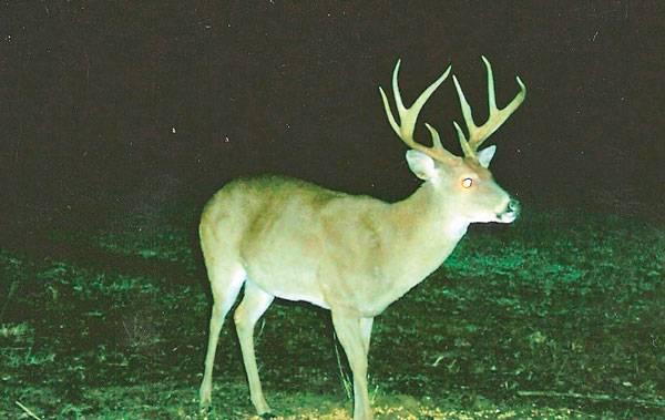This is a nice 1½-year-old in the piney woods of DeSoto Parish with a live weight of around 120 pounds and showing nice antler growth for this age class. Let him go and grow, but keep in mind this buck is smart. It has learned where the corn comes from, and it probably knows where you are too during the hunting season. As deer grow older, they also become much wiser.