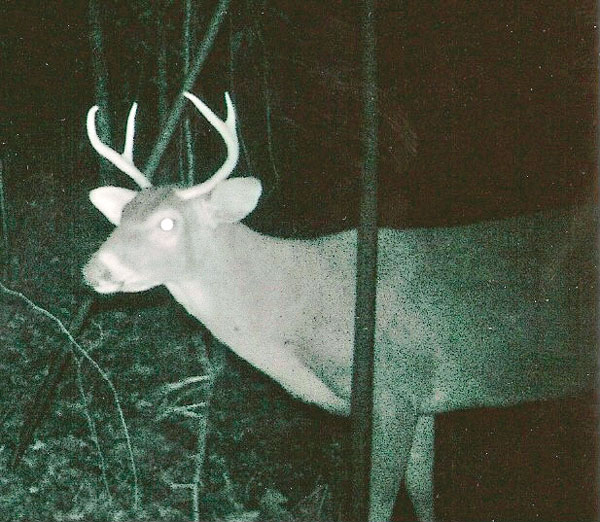 This is a top-end mature buck in East Feliciana Parish, and may be 6 years old. The main beams are long, maybe 25 inches and a 20-inch inside spread. Note how large it is compared to the 2½-year-old 6-point. It is missing its brow tines, but you don’t get many chances at one like this. Unfortunately, this photo was taken in March, so it was too late to shoot. If it survived the 2011 drought, it might be the same size or maybe larger this season. A buck this size is not easy to mistake, but apparently the habits of this deer during the 2010 season were such that it avoided the hunters in the woods, so you better do some homework next year if you want to put your tag on it!