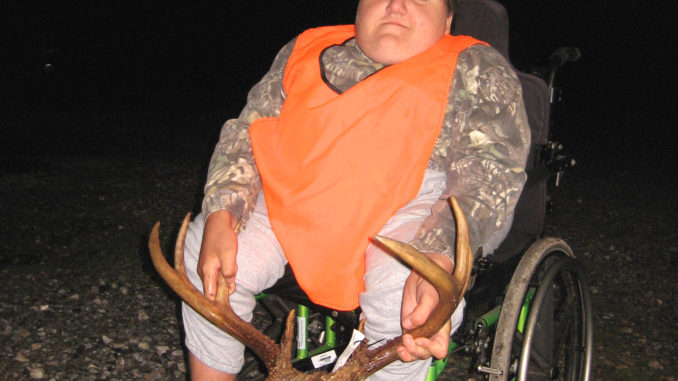 Since physically challenged permitted hunters are allowed a helper, his godfather Tim Bourque was with Brandon in the deer blind on Nov. 29. Brandon said he and his godfather got to the blind about 2:30 p.m. Brandon said it wasn’t long before his godfather noticed a buck in the far corner of the field.