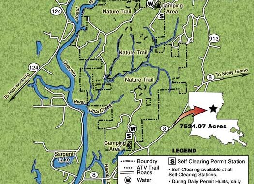 And that’s the downside of the WMA. Elevations on the property, located just to the west of Sicily Island along the east side of the Ouachita River, range from 35 feet mean sea level to 245 feet, often in very short distances.