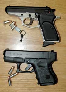The guns are similar in size and weight (about 18 ounces), both have external hammers and both carry seven rounds in their magazines (eight with one in the chamber).