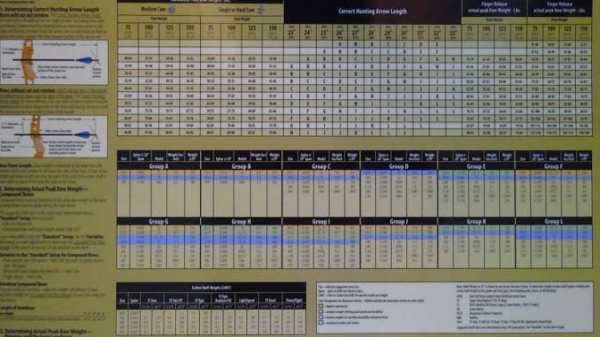 The two most commonly misunderstood arrow features are arrow spine and weight. Arrow spine is how much or little an arrow shaft flexes or deflects at a standard length or span when a standard force is applied to the shaft. The industry standard for this measurement is a 28-inch span with a weight that is slightly more than a pound suspended from the center, and is expressed as deflection in thousandths of an inch. An interesting story I once heard was that when Easton set up the first arrow spine chart, he went to his local hardware store and purchased a 1-pound weight to do his measurements. Keep in mind, this was before computers, so all of his calculations were on paper. It was only after he finished the chart that he weighed the weight, which he found to weigh slightly more than a pound. Rather than starting over, he stuck with the heavier weight, and it is now the industry standard.