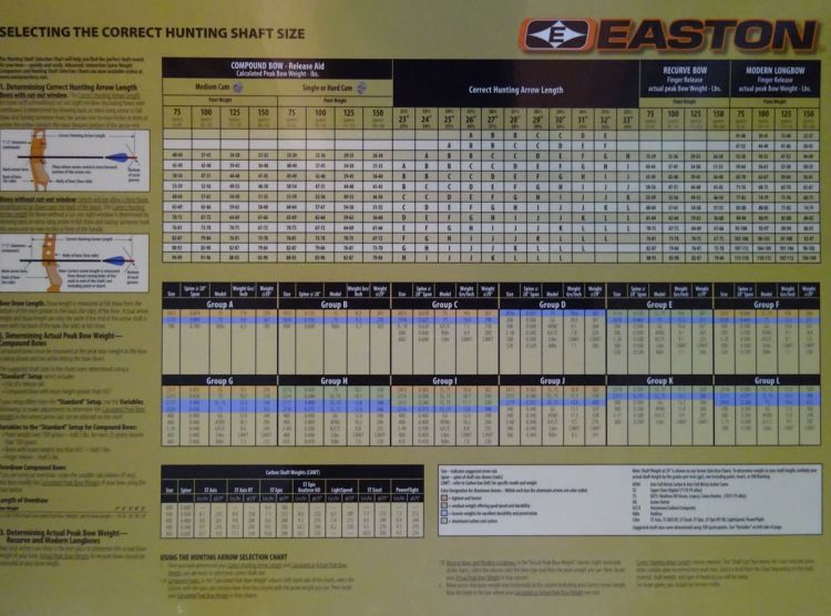 All Easton-brand arrows are rated by a true deflection number. It is important to remember that the lower the deflection number, the stiffer the arrow shaft. Other manufacturers, including Carbon Express, use a numbering system of their own, where the numbers are not true arrow spine. In their shafts, higher numbers mean stiffer shafts. They measure the spine using the industry standard, however, and these spines are available for cross reference on their websites. These variations in labeling can be confusing for the consumer. Proper and consistent arrow spine is key to achieve straight and consistent arrow flight. Arrow spine must be matched to your bow setup through paper and or bare shaft tuning if you are to get the most out of it.