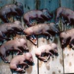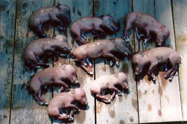 The next morning I was up early, finishing the job and packing the meat on ice. I checked the uterus and found that the hog had nine piglets in its uterus.