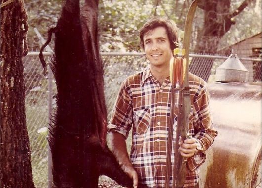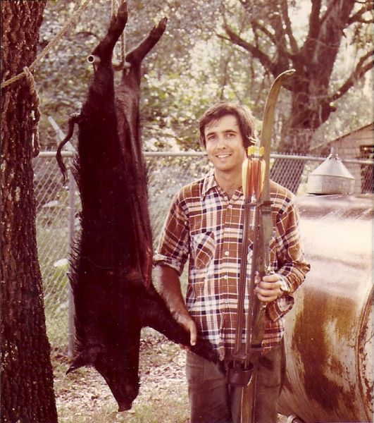 I killed my first hog with my old Bear Kodiak recurve bow while slipping along the edge of the Oil Well Road, which was under construction. It was a perfect double-lung shot, and the young hog made a small circle in the brush and died. The work, of course, was getting it back to the vehicle.