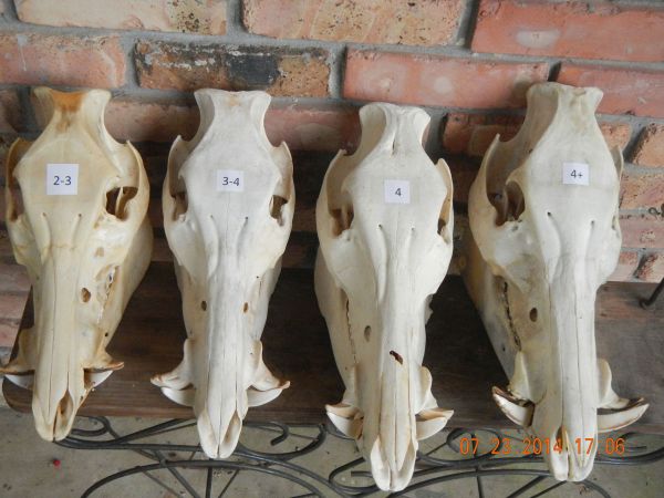 I have been playing around with some of these measurements, and definitely the 4-year-old and older hog skulls are larger than the ones for 2- and 3-year-old boars.