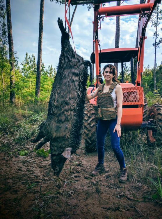 Shiree hunts hogs 200 nights a year and shares the meat they don’t keep for sausage with friends. “We have a list of people who want pork. When we shoot a hog, we start texting the list, although often we will have someone who has requested a hog ahead of time.