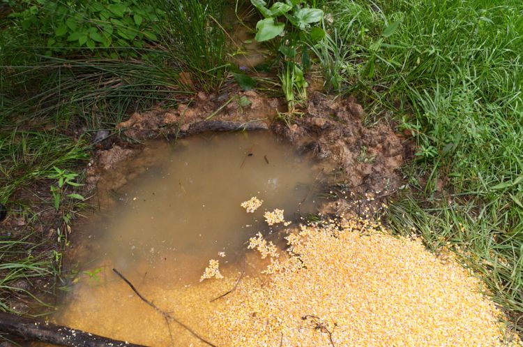 “Souring is good to first attract hogs to a bait site. Once they come, they will return again and again and can be fed dry corn.