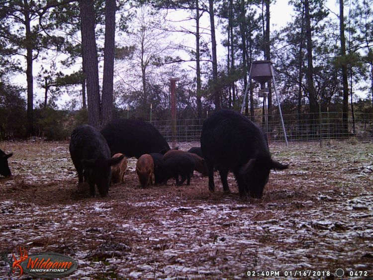 Hogs may also be trapped with cage or corral traps and a basic hunting license. The traps must have an opening in the top measuring not less than 22 x 22 inches, or 25 inches in diameter. A trapping license is required for the use of snares for hogs, and please don’t use snares in areas where bears are found.