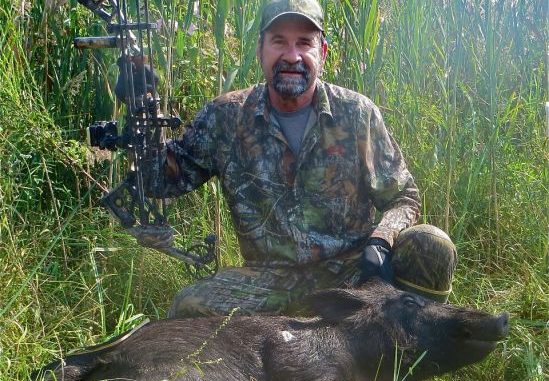 Now at full alert, I heard another hog grunting and this one sounded much bigger. Within seconds, I saw a black sow headed in my direction, but she saw me and started to cut to my right into the thicket. At 20 yards, I could only see the top of her ears in the tall grass, 5 feet before she would disappear into thick cover. Already at full draw, I moved my 20 yard pin to where her shoulder “should” be and let the arrow fly.