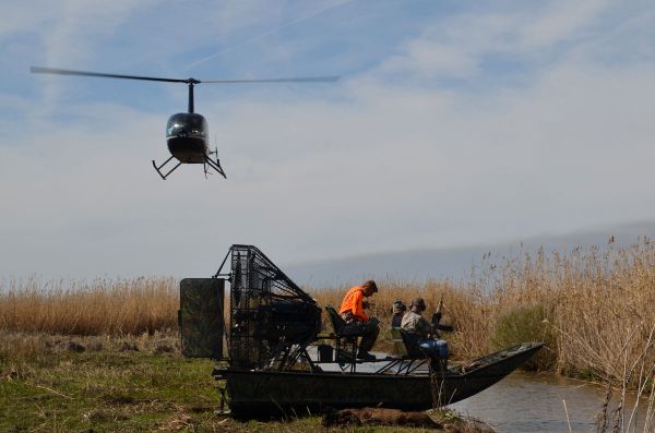 “During the hunt, I fly about 100 feet up. I have a rider with me who is on the radio directing the airboats,” Smith said. “When I fly an area a day or two before a hunt to spot hogs, I fly higher — around 400 feet.”