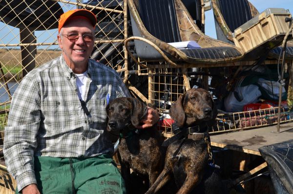 Haupt and Edgar parked their airboats on opposite sides of a big patch of cane where Fortier had spotted hogs holing up the previous day. Edgar’s Plotts yammered, yelped and strained at their leashes.